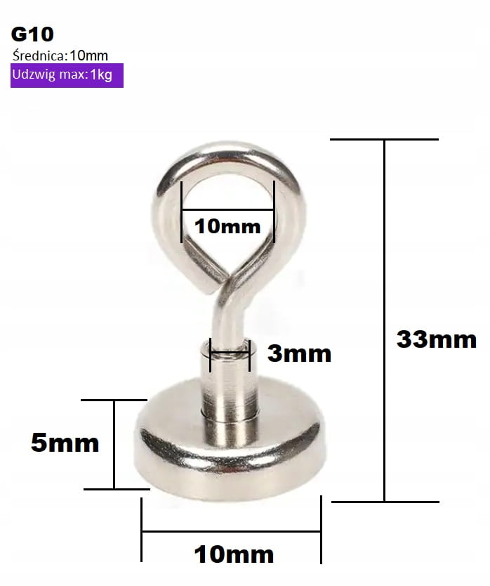 Uchwyt magnetyczny z haczykiem Fi 10 w obudowie metalowej