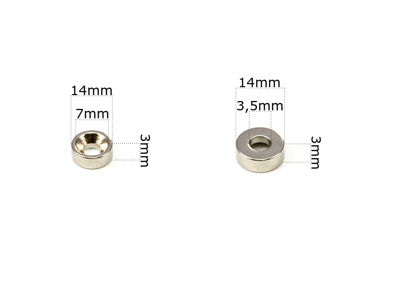 Magnes Neodymowy 14x7/3,5x3 z otworem stożkowym pod wkręt o mocy N42