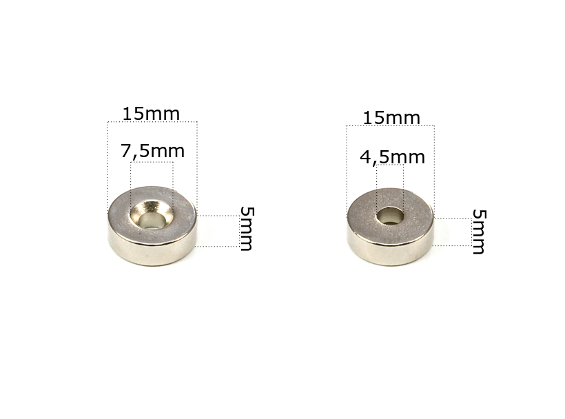 Magnes Neodymowy 15x7,5/4,5x5 z otworem stożkowym pod wkręt o mocy N42