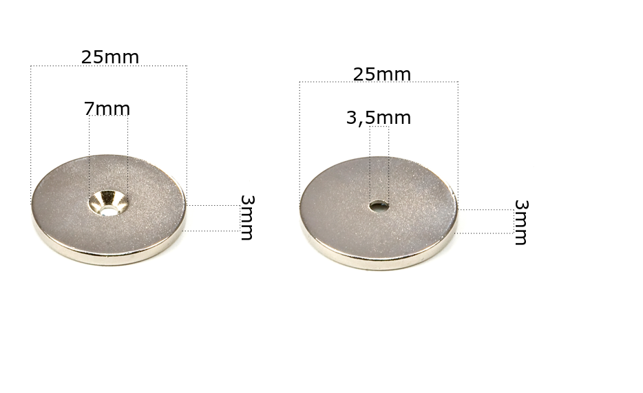 Magnes Neodymowy 25x7/3,5x3 z otworem stożkowym pod wkręt o mocy N42