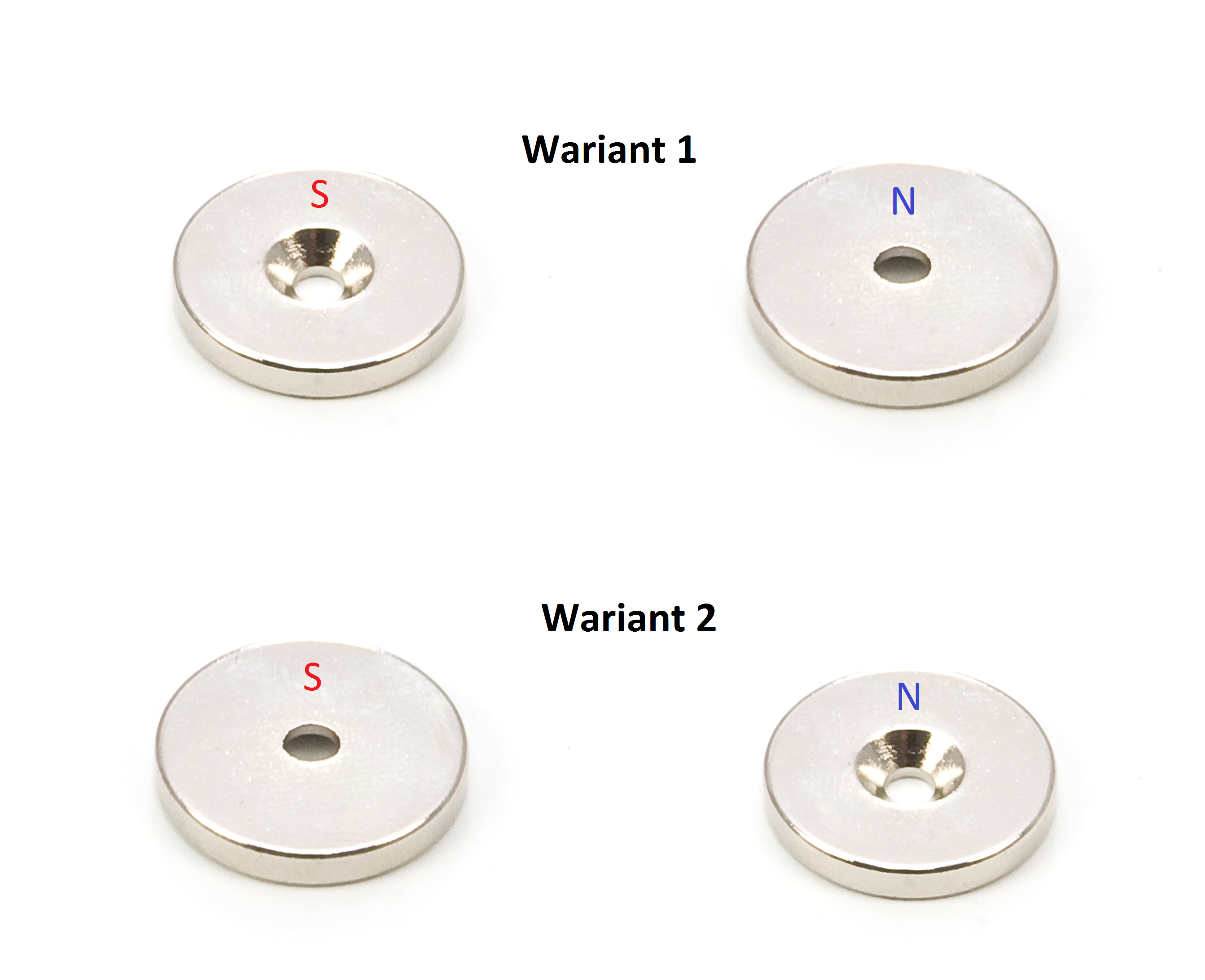Wariant z kierunkiem magnesowania "N" od strony otworu z fazą.