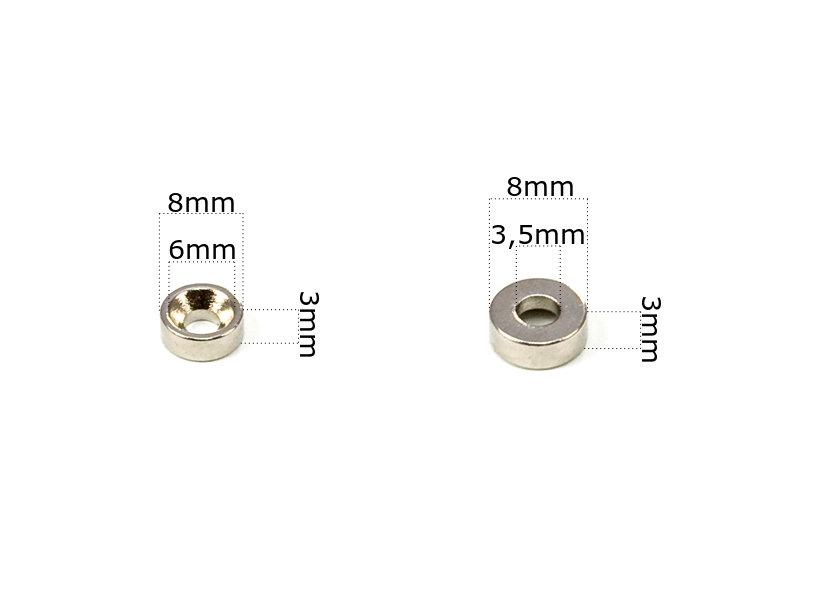 Magnes Neodymowy 8x6/3,5x3 z otworem stożkowym pod wkręt o mocy N42